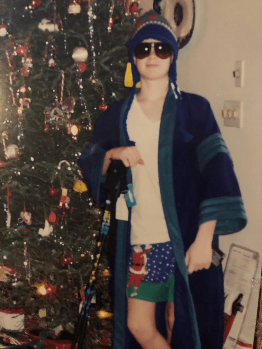A episode of sleepwalking while vacationing in Galway with Shaela led to her finding Andrew on a hallway couch three floors down wearing this.
