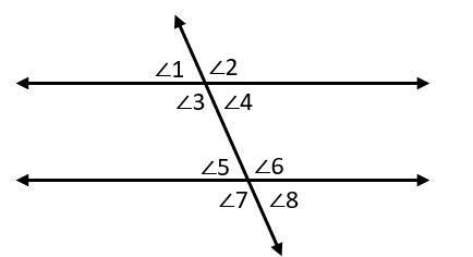 Mike and Eleven are stuck in the upside down (illustrated as them being between two parallel lines) and cannot find each other. If Mike is at angle 4 and Eleven is at angle 5, what term would we use to describe their relationship?
