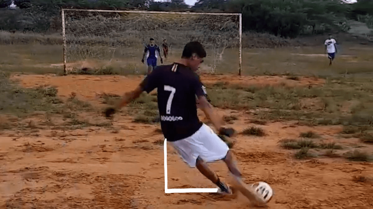 When Iran Ferreria strikes the ball (RECEBA!!!!), his body forms a right triangle with the ground. The length of his left leg is 3 feet. The distance from his hip to the ground is 2 feet. How long is the remaining side? (from his left foot to the ground that lines up with his hip)