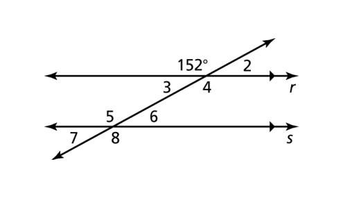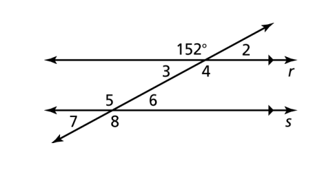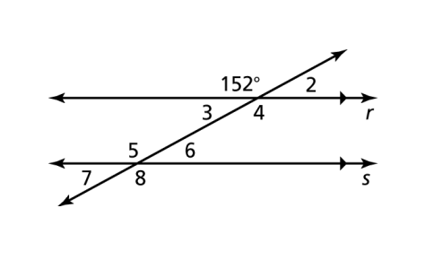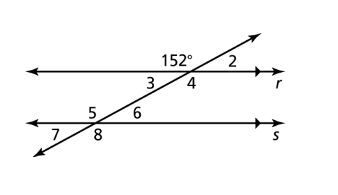 Angle 8 is 152o because it is vertical to Angle 5 which is corresponding to the given angle.