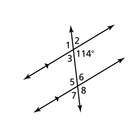 Angle 7 is 66o because it is supplementary to Angle 8 which corresponds to the given angle.