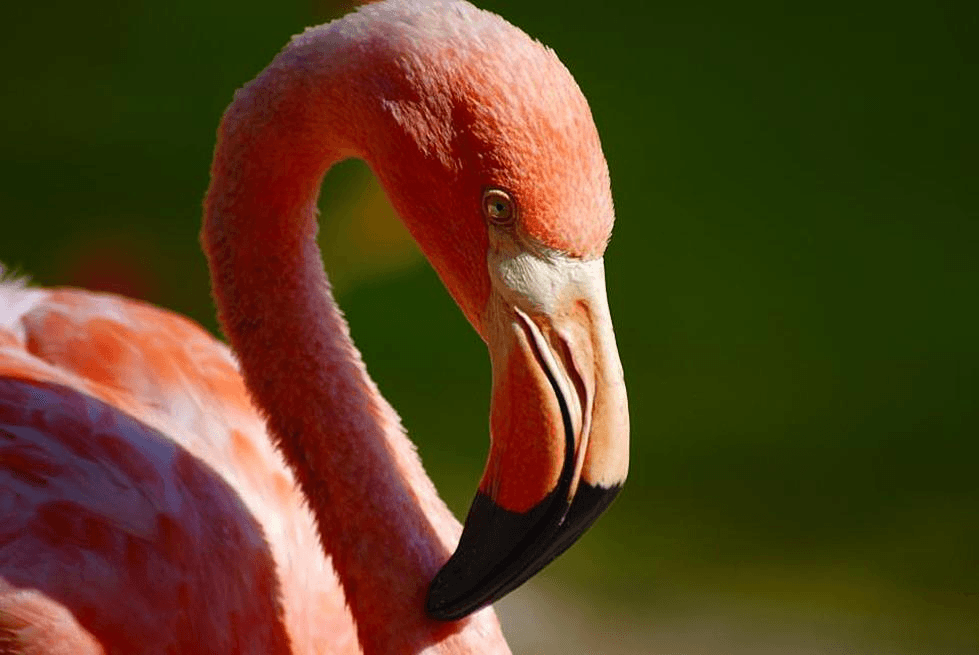 These brightly colored birds develop their unique color due their diet of shrimp and small plankton.