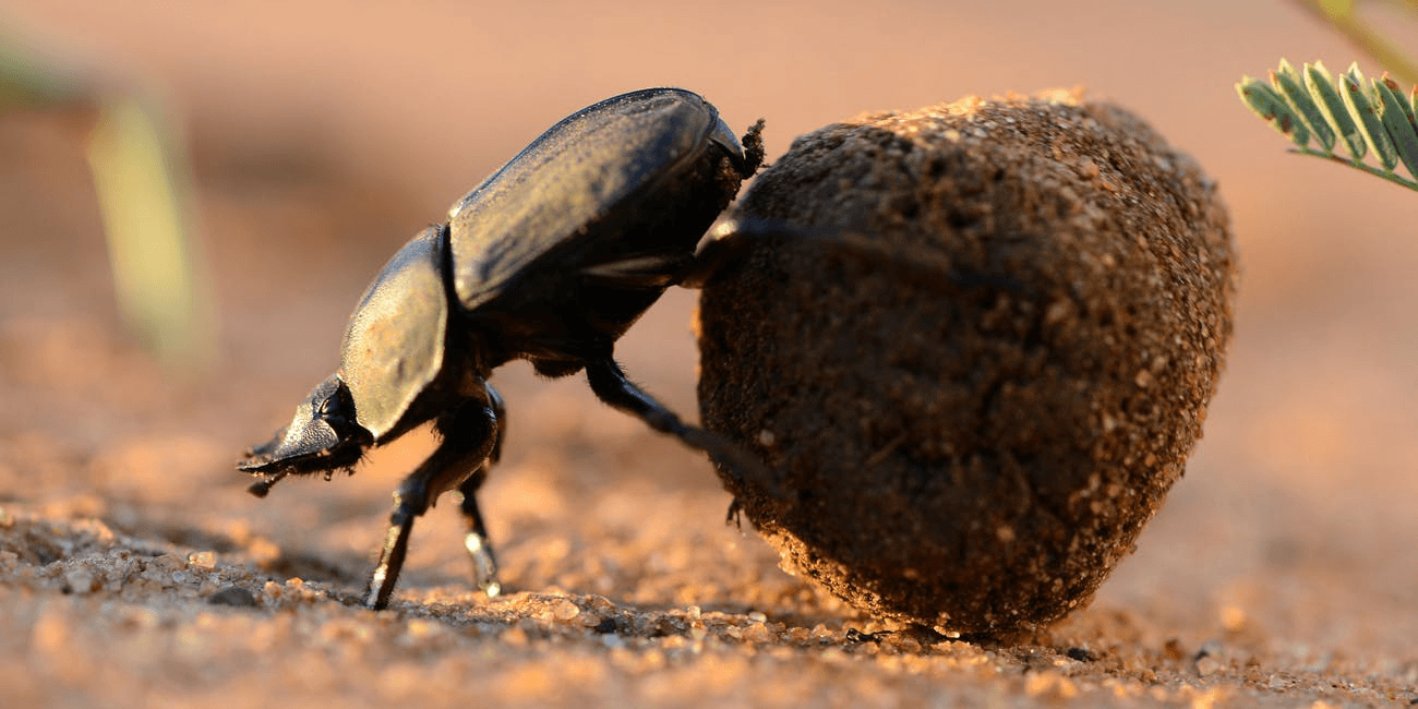 This stinky anthropoid can be seen rolling large balls of... stuff...