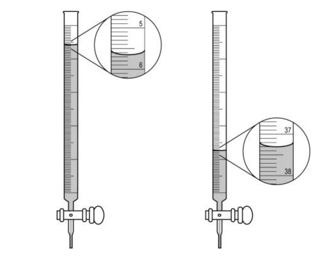 37.3 - 5.65 = 31.65 mL (simply 31 or 32 is not an acceptable answer)