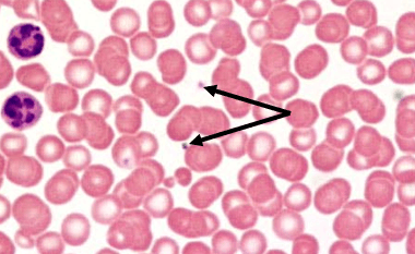 C) reticulocyte - name for RBC that has just been released from bone marrow, still unoxygenated