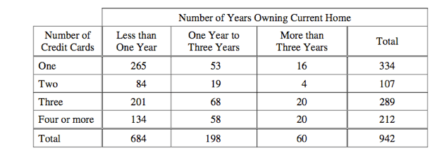 This is the fraction of homeowners who have 4 or more credit cards who have owned their current home for at least one year?