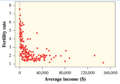 There is a moderately strong, negative nonlinear relationship between average income and fertility rate.