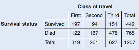 Based on the Two- Way Table below, the proportion of passengers in second class 261/1207 is an examples of ____.