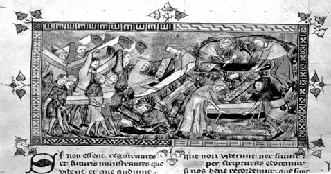The burial depicted in the image most likely resulted from the spread of which of the following?