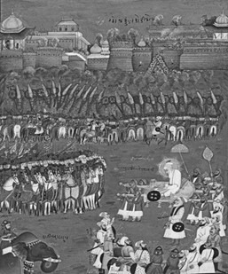 (B) Emperor Aurangzeb overthrew his father in order to become the Mughal emperor, while the ruler of Golconda succeeded his father peacefully.