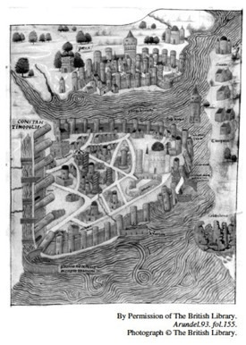 The thirteenth-century map of Constantinople shown above indicates that the city