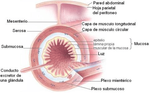 - Delgado: duodeno, yeyuno e íleon