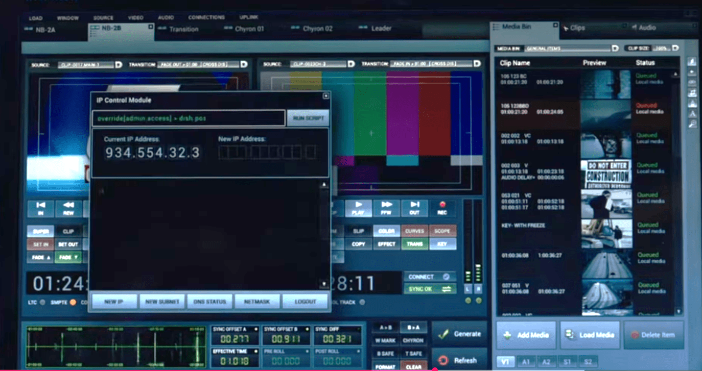 In this scenario, a hacker cracks a government system in 60 seconds while dubstep plays, bouncing between multiple monitors and GUI hacking tools that look more like WinAmp skins than terminals.