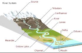 Differentiate between the area near the source of the river and the area toward the mouth of the river.
