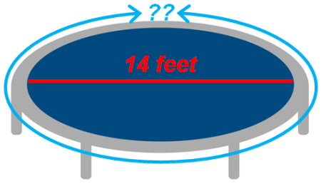If Jamie wanted to put a cushion around her trampoline, how long would it have to be?