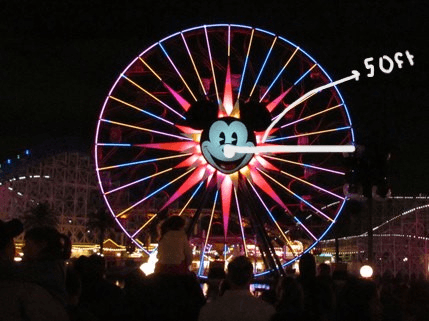 Jenna wants to know how much space the Ferris wheel she rides takes up at the fair.