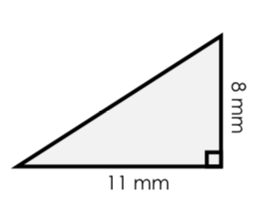 A triangle has a height of 10mm and a base of 8mm, the area is 80mm2