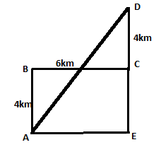 What is the area of the figure below? Line AE is 12 km long.