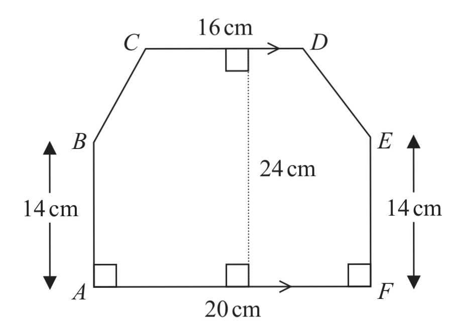 90 + 72 + 54+ 24 + 24 = 264 cm2
