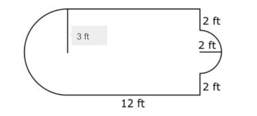 A rectangle has a width of 5.5 feet and a length of 7.5 feet.