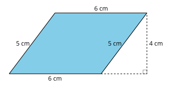 What is the area of a parallelogram with a base of 3 meters and a height of 12 meters?