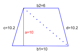 The area of a trapezoid with a base 1 of  10 cm, a height of 10 cm and a base 2 of 6 cm.