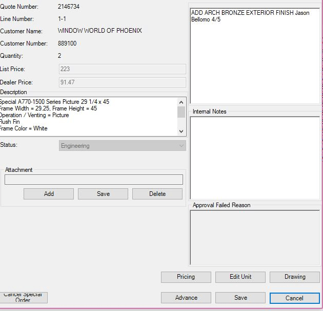 The system used to edit, schedule & bill a window order