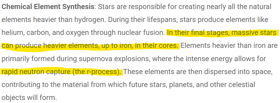 This process creates elements heavier than iron in the cores of stars.