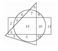 Which numbers are inside a triangle and inside a circle, but not a rectangle at the same time?