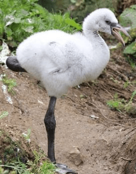 Baby flamingos are born gray and then turn this color as they grow older