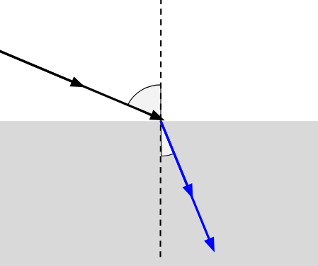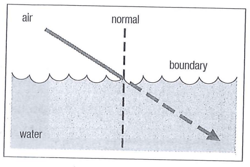 When a ray of light passes from air into water at an angle of incidence of 90°, which way does the ray of light bend?