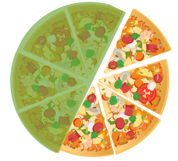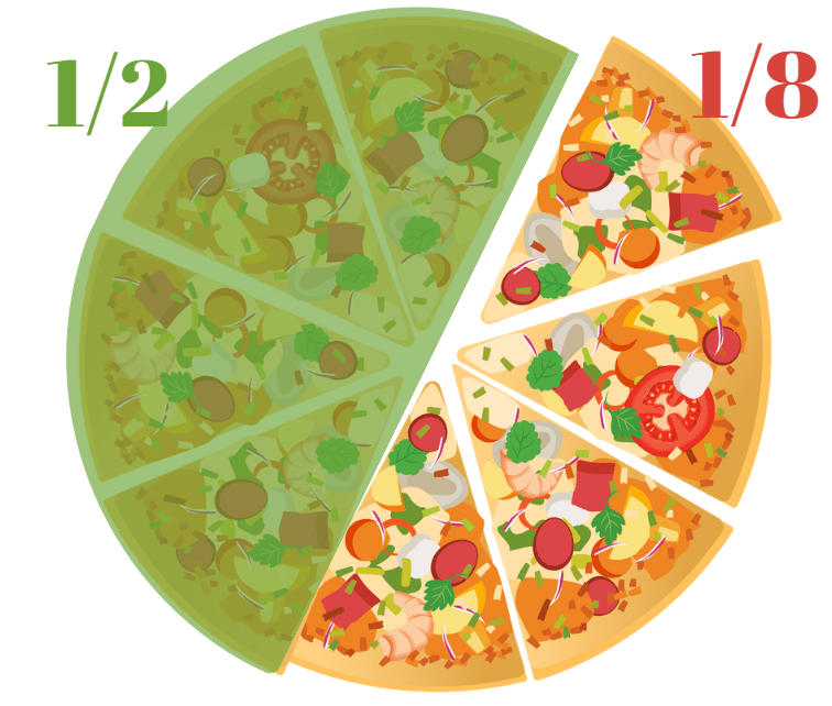 Which fraction is the biggest part of a pizza?