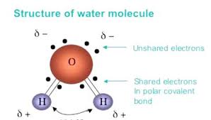 Draw a water molecule and show how it is a polar molecule (show charge distribution)