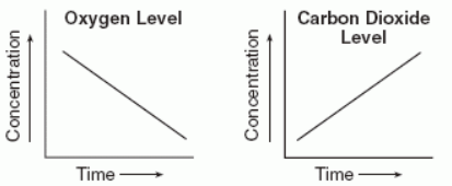 The graphs below show the changes in the relative concentrations of two gases in the air surrounding a group of mice.