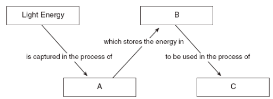 6CO2 + 6H2O → C6H12O6 + 6O2