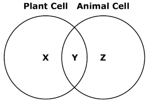 A student is using the Venn diagram shown below to compare structures in plant and animal cells.