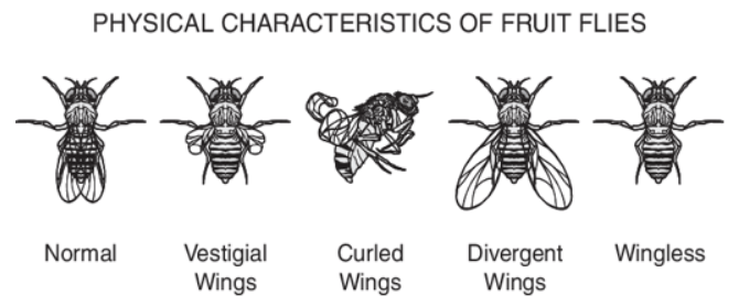 Students are observing the physical characteristics of live fruit flies, as shown in the diagram below.
