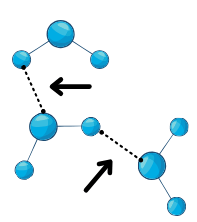 Hydrogen of one water molecule and the oxygen of another water molecule
