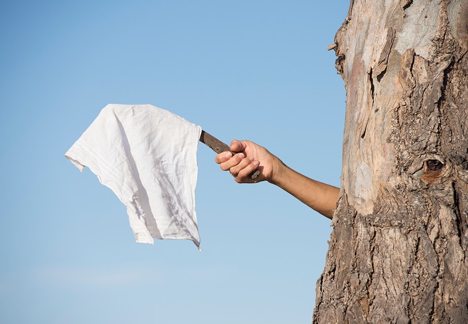 Du skal signalere til en fjende at du gerne vil overgive dig.
