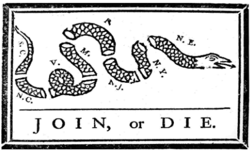 What was published in the Pennsylvania Gazette to urge colonists to join together to protect themselves against further French aggression from the French and Indian War.