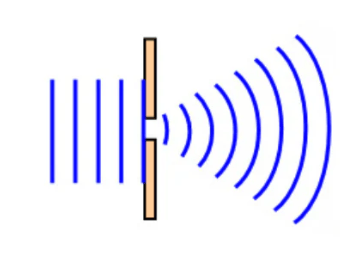 (waves bend or spread out as they pass around an obstacle or through a narrow opening)