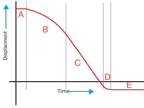 Describe what is happening in terms of displacement/velocity/acceleration in section E.