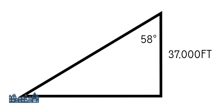 Based on that we can find the horizontal distance from the airplane to the first town to be.