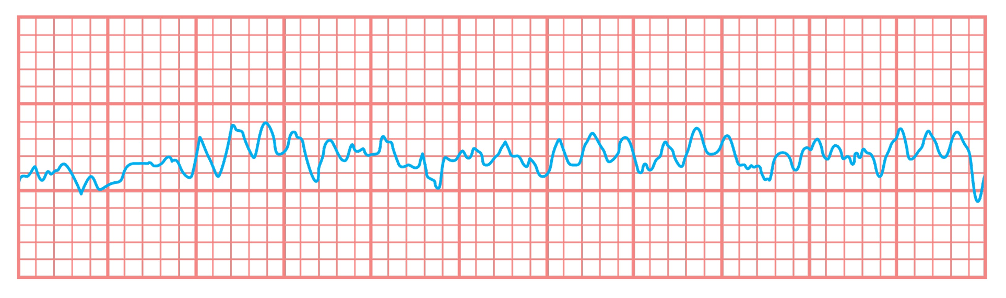 A 68-year-old man with a history of hypertension comes to the emergency department because of palpitations and lightheadedness for the past 5 hours. On physical examination, the patient has an irregularly irregular pulse. ECG findings are shown. Blood pressure is 165/95 mm Hg.