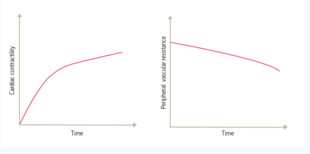 A 65-year-old woman with a history of congestive heart failure (HF) comes to the clinic with worsening symptoms suggesting an HF exacerbation. She is treated with diuretics as well as a medication that has the effects shown in the graphs. The medication administered to this patient was most likely