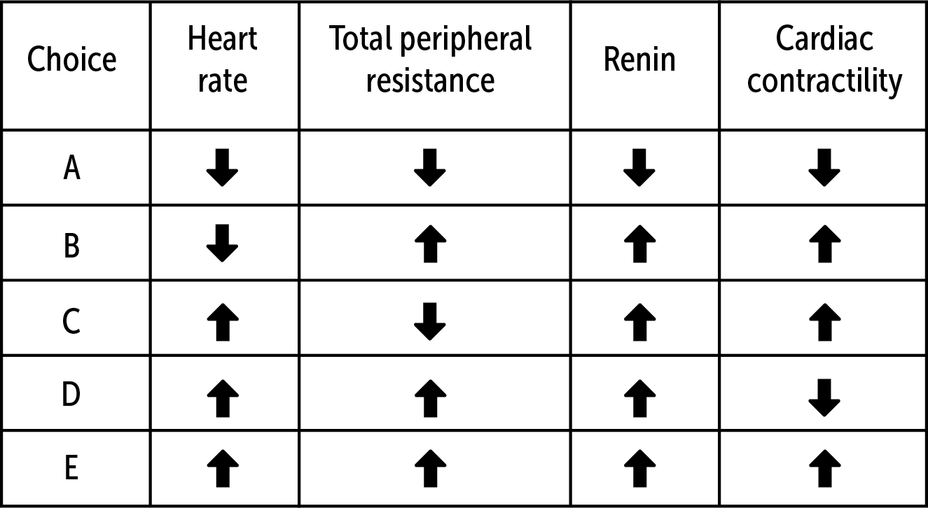 A 56-year-old man is brought to the emergency department 30 minutes after slicing his arm while chopping wood, leading to significant blood loss. His blood pressure is 92/58 mm Hg. On examination, he appears lethargic and pale. His extremities are cool to the touch.