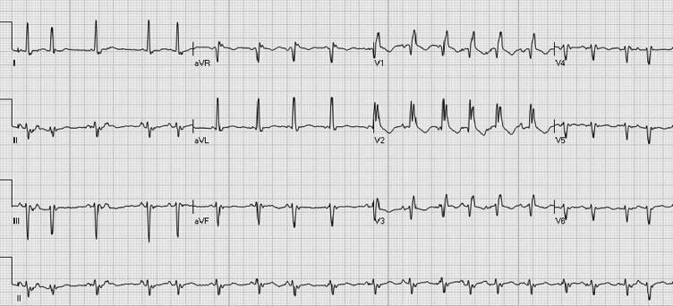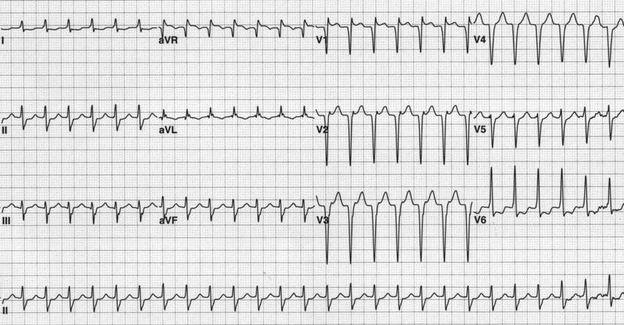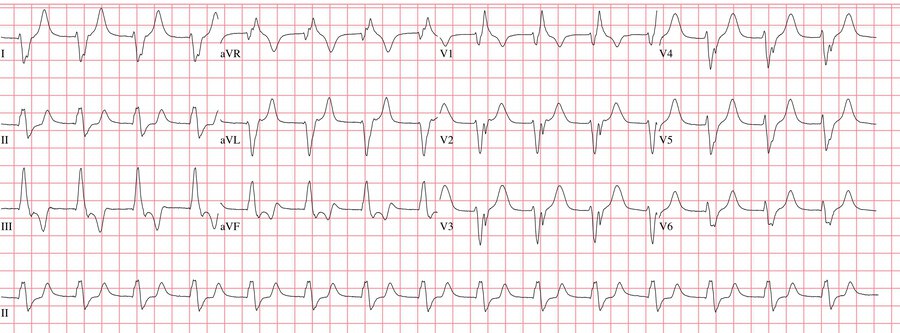 escape rhythm arising from the ventricular myocardium. The QRS complexes are wide (as in all ventricular arrhythmias) and fairly regular. An idioventricular rhythm is typically at a rate between 30/min and 40/min but is considered accelerated when the rate is more than 50/min but less than 100/min. this occurs after reperfusion