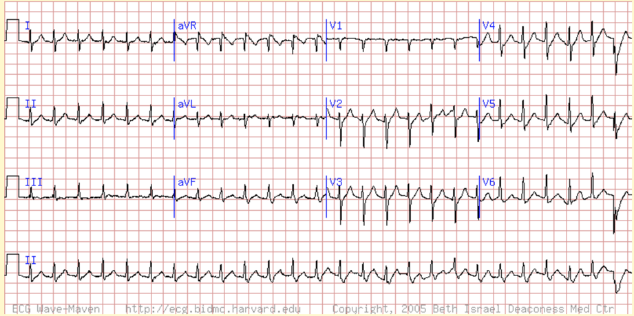 ¿qué diagnóstico indica el siguiente ecg de una mujer de mediana edad gravemente enferma en shock?