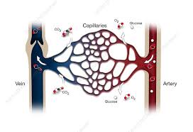 The smallest blood vessels (one cell wall thick) that perform oxygen/nutrient and waste exchange from the cells of tissues.