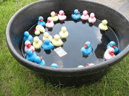 This game is in a large tub, water and small rubber objects, buckets and you can win small prizes. What is the game...
